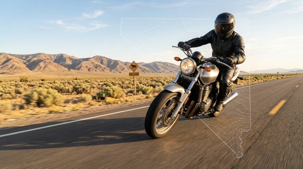 This guide is built around Nevada primary sources: Nevada DMV pages and manuals, Nevada Division of Insurance consumer materials, Nevada statutes, and Nevada/NWS weather sources where state-specific riding conditions matter.[1][4][5][7][8]